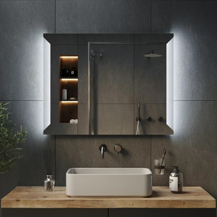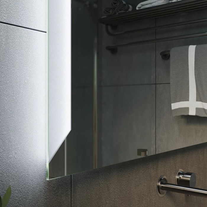 Вбудований трансформатор перетворює 220В на безпечні 12В. Завдяки компактному LED-підсвічуванню та сучасній архітектурі, товщина дзеркала становить лише 24 мм.