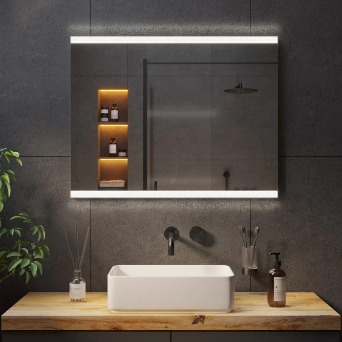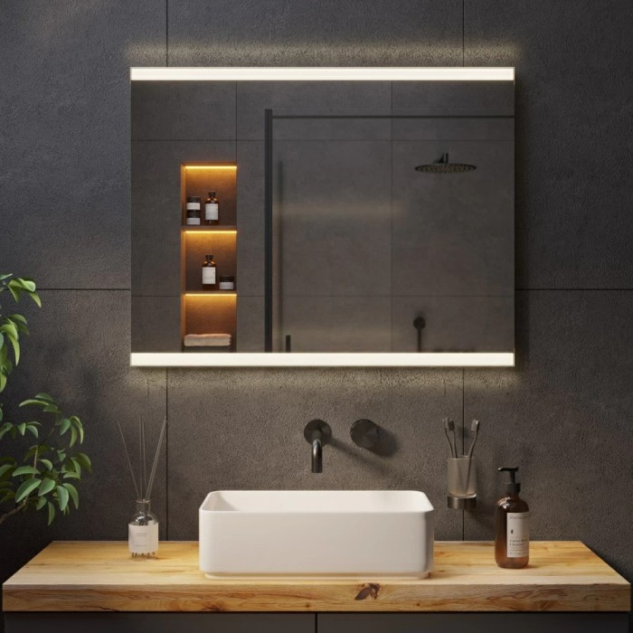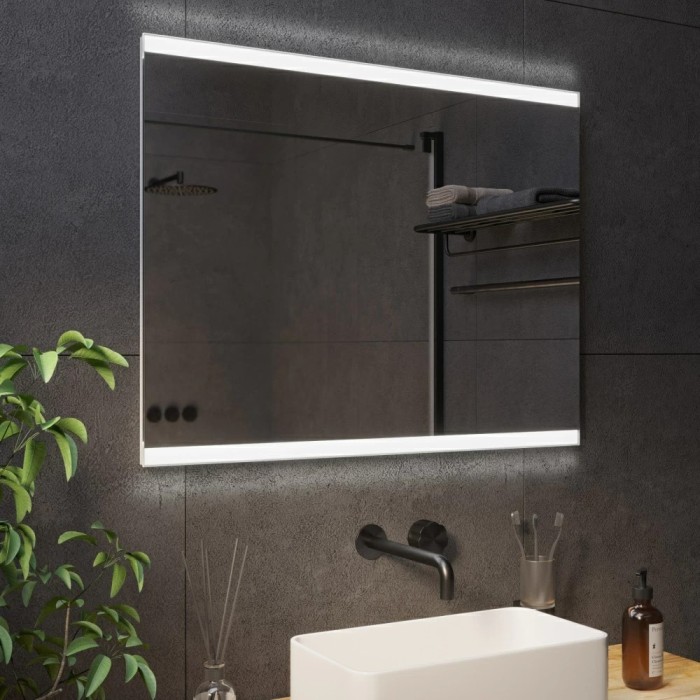 Дзеркало з підсвіткою Remi — стильний і практичний елемент сучасного інтер’єру. Прямокутна форма, мінімалістичний дизайн та фронтальне світлодіодне підсвічування у вигляді широких горизонтальних ліній зверху та знизу роблять його ідеальним вибором для ванної кімнати або гардеробної.