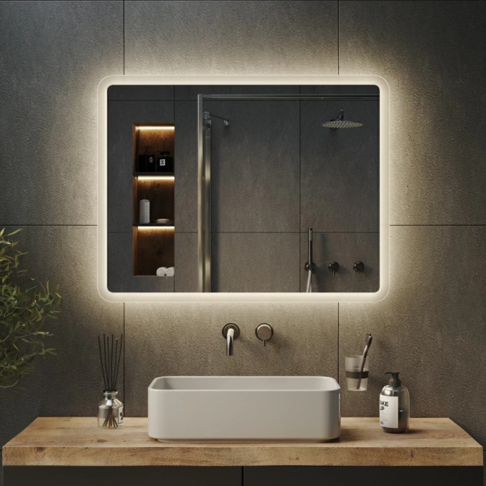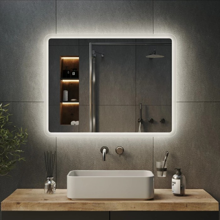Світлодіоди приховані на зворотному боці, створюючи м’яке та рівномірне сяйво вздовж стін. Такий «амбiлайт»-ефект наповнює простір затишком і візуально полегшує конструкцію дзеркала.