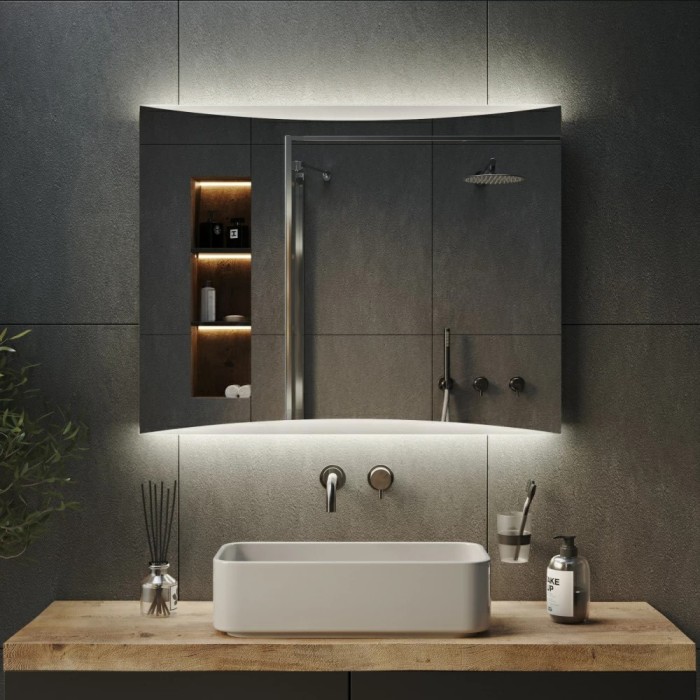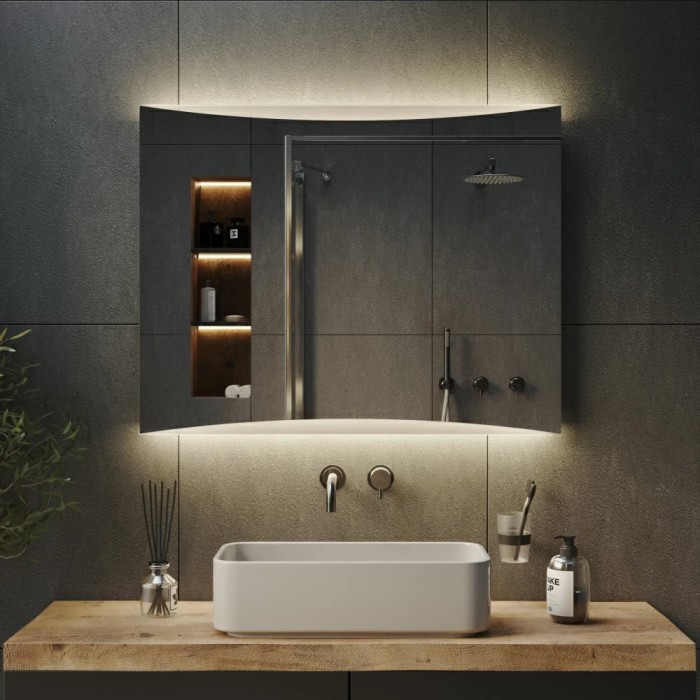 Комбіноване підсвічування працює як по периметру дзеркала, так і з тильного боку, створюючи м’яке сяйво та візуальний «ефект ширяння».