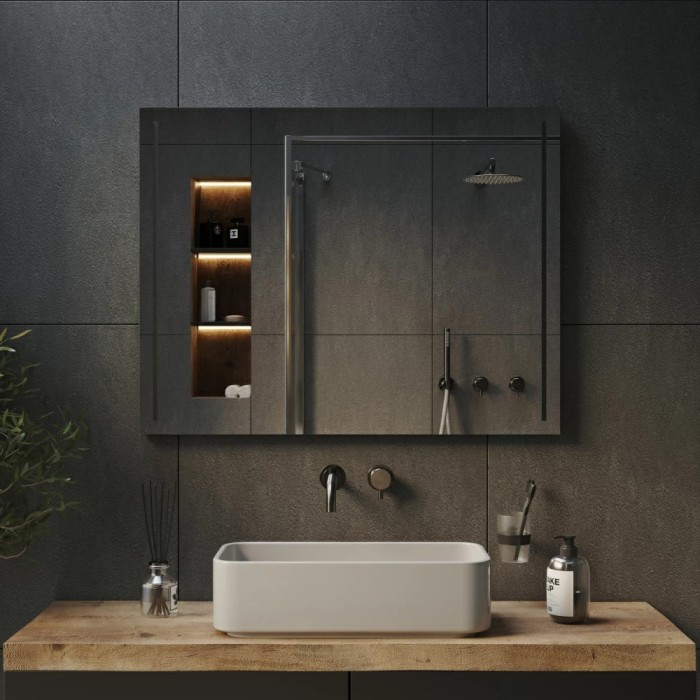 Дзеркало підключається до прихованої проводки 220В, виведеної за виробом.