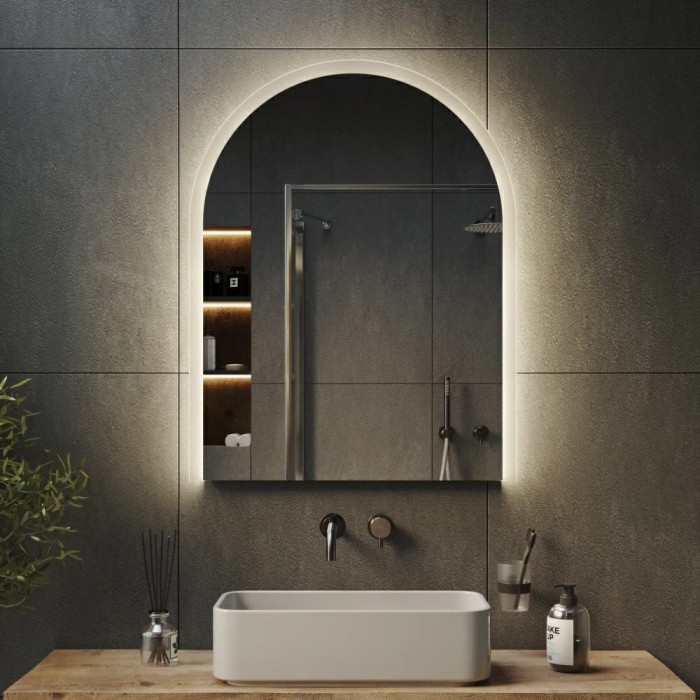 Фонове підсвічування розташоване позаду дзеркала — створюючи м’яке світіння та ефект ширяння.