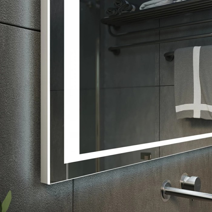 Підсвітка розташована тільки на зворотному боці дзеркала, створюючи м’який ореол навколо та ефект невагомості.